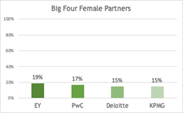 As shown in Figure 2, AICPA’s statistics are supported by an analysis done by the Financial Reporting Council in 2018. The council surveyed all of the Big Four companies (the leading accounting firms in the world: Deloitte, Ernst & Young [EY], PricewaterhouseCoopers [PwC], and Klynveld Peat Marwick Goerdeler [KPMG]) to determine male-to-female ratios in all positions. The research concluded that although the accounting profession has a nearly equal ratio of males to females upon entry, the number of females who have obtained a partner position beyond that compared to males is below 20 percent.2