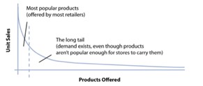 The second name for the strategy of finding niche markets is the long-tail strategy, which was created by Chris Anderson, editor-in-chief of Wired magazine (see Figure 1). The name references finding the long-tail in a distribution curve of customers and marketing to that tail. Selling in the tail is profitable for microenterprises because customers in the tail are looking for unique products not sold by mass producers, so they are willing to pay top dollar when they find that specific product.8 Basically, “the whole key to entrepreneurship is to find a need and fill it.”9