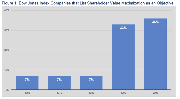 Based on Milton Friedman’s and others’ arguments, shareholder primacy quickly became entrenched as the reigning corporate governance philosophy in the United States (see Figure 1). However, business failures and vocal critics gradually began to chip away at the theory’s dominance.