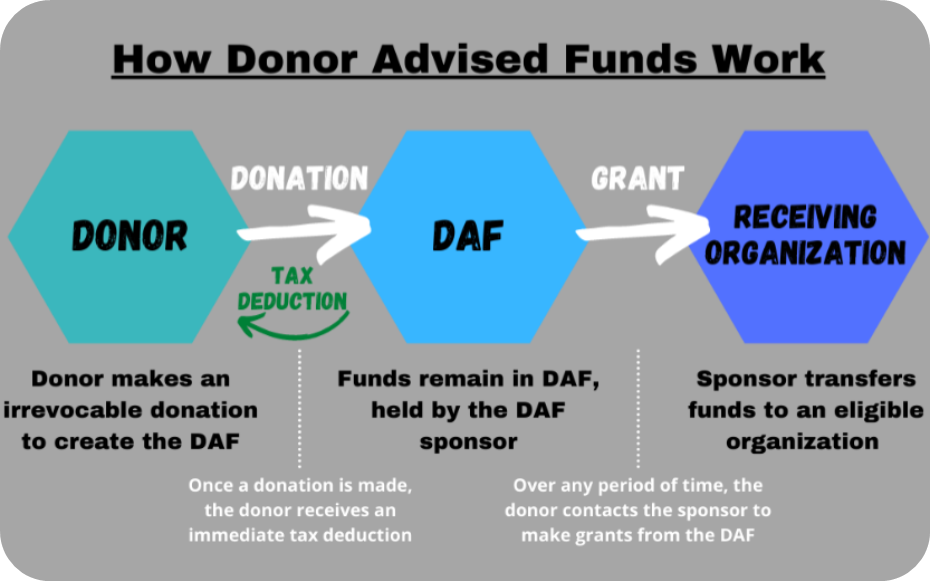 First, we need to understand how a DAF operates. Below is a diagram illustrating how money flows through a DAF.