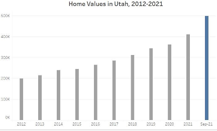 Home prices in Utah have steadily increased over the past 10 years. Within the past year, the most significant price increase has been seen in the volatile housing market. Figure 1 shows the housing prices by year from 2012 to September 2021.