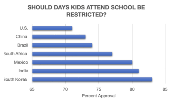 The world wants to return to normality, but that is not yet possible. As we consider the needs of older people and those with compromised health, we realize the need to compromise in many aspects of our lives. Even as a vaccine becomes widely distributed, the danger is still present and real to people with preexisting conditions. In addition to the real risk of reopening, there is widespread support behind at least restricting the number of days that school is held in person. A recent poll by IPSOS, a global market research company, states that “16 major countries, almost two in three people (65%) support restricting the number of days children can attend school.” This data is summarized in Figure 1: